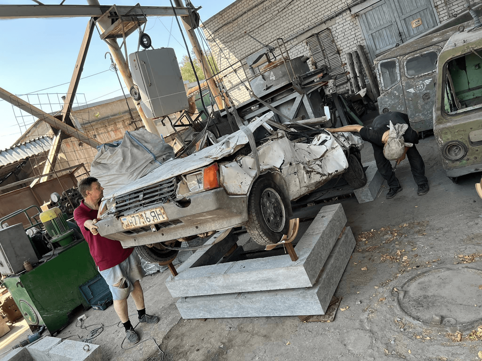 Основатель музея “Машины времени” Михаил Прудников увидел фотографии с места удара и решил спасти машину, превратив ее в часть музейной инсталляции под названием “(НЕ)РАЗЧЛЕННЫЙ”. Поиски хозяина оказались непростыми, но в конце концов автомобиль был передан в музей. Изуродованная “Таврия” стоит на обломках бетона и остатках металлических конструкций, символизируя непрерывность жизни даже в самых тяжелых условиях.