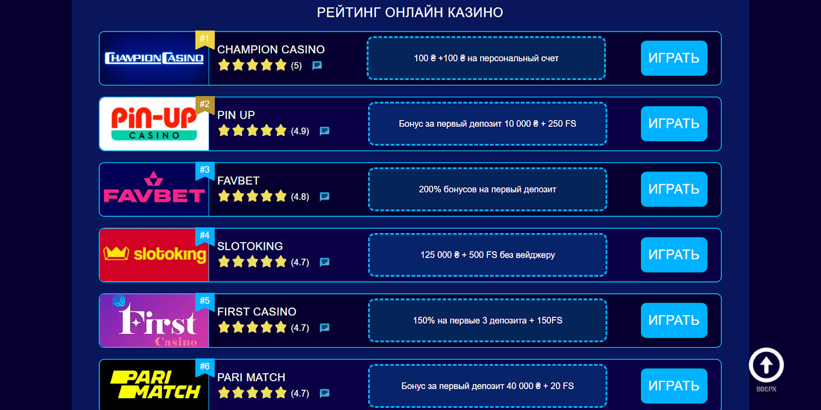 TopPlay экономит ваше время и показывает реальные оценки украинских онлайн казино. Стоит ли вкладывать деньги в конкретное заведение? Игра на деньги или демо-режим? Это уже то решение, которое игрок принимает самостоятельно. Единственное, что можно сказать наверняка, так это то, что каждый ресурс, представленный на портале TopPlay, сможет предложить качественный и насыщенный эмоциями досуг.