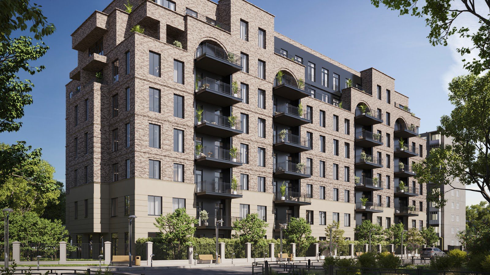У житловому комплексі все дуже зручно, а поруч знаходиться вся важлива інфраструктура: лікарні, освітні заклади, банки, супермаркети та ресторани. У будинку запланували дворівневий паркінг на 244 паркомісця, половина з яких має можливість заряджати електромобілі.