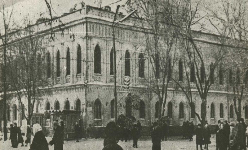 Залишався єдиний вихід – придбати вже реальну будівлю. Після тривалих пошуків було знайдено відповідний об’єкт: кам’яну двоповерхову будівлю на перетині проспекту та вулиці Воскресенської. Воно розташовувалося на значній земельній ділянці, мало додаткові споруди та сад. Вишуканий ажурний балкон, кований карниз головного входу та вишукане внутрішнє оздоблення з мармуровими підвіконнями та камінами робили цей будинок одним із найпривабливіших у місті.
