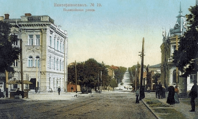 У період з 1901-го по 1902-й рік на розі між вулицями Олександрівська (більш відома як Артема, а нині – Січових Стрільців) і Поліцейська (зараз Шевченко) зводиться великий комплекс з двох 3-х поверхівок, корпуси яких будувалися з квартирами та внутрішніми магазинами. Масштабне будівництво організовує відомий у Катеринославі фармацевт та аптекар – Костянтин Ігнатович Стефанович, він був у цьому напрямі одним із найкращих.