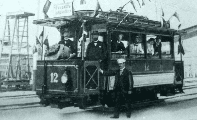 Катеринослав у 1897-му році став третім містом Російської імперії (після Києва та Нижнього Новгорода), який має власну електричну залізницю. В червні того ж року свою роботу розпочинають шість зелених вагончиків виробництва “ГАНС і К °”, маршрут яких проходив головною магістральною лінією від залізничного вокзалу “Дніпро-Головний” по проспекту і до самої Соборної площі, інтервал руху складав 15 хвилин. Офіційна назва цього маршруту – “Вокзал – Соборна”.