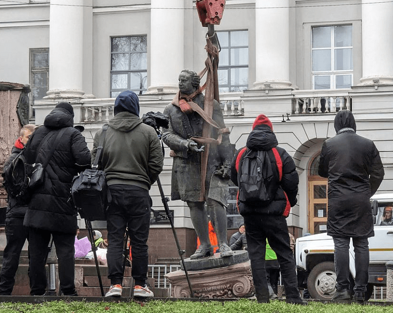 Демонтаж пам`ятника Ломоносову. Джерело фото: jenyatravels.com/ru
